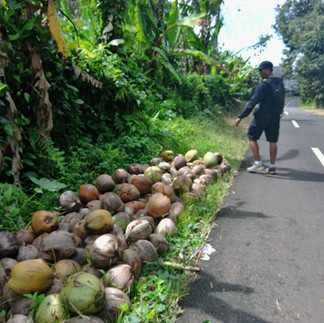 יצאנו עם מדריך לטיול הליכה סביב הכפר, עברנו בשביל די מרכזי כדי לראות עצי קוקוס, בננה, קפה, קקאו, מוסקט ודלוריאן. משם חתכנו פנימה לתוך הג'ונגל בדרך חלקלקה אל שני מפלים שבפועל נמצאים דקה ירידה מהבונגלו שלנו. אפשר גם לעבור בכפר הסמוך. אנחנו החלטנו לוותר ולהכנס לג'ונגל.
